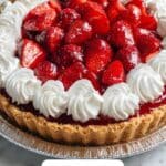 10. Add the Topping: Before serving, arrange sliced fresh strawberries on top of the pie and optionally add a dollop of whipped cream for extra creaminess.
