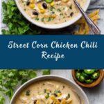 Street Corn Chicken Chili is a creamy, flavorful Mexican-American dish featuring tender chicken, fire-roasted corn, white beans, and a blend of spices simmered to perfection. Enriched with sour cream and cream cheese, it boasts a rich texture and a perfect balance of smoky, spicy, and tangy notes, garnished with cotija cheese and fresh cilantro for an authentic street corn-inspired experience.