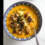 Give your soup a taste and adjust with a little extra salt if needed. Ladle it into bowls and top with the roasted cauliflower crumbles, a sprinkling of fresh chives, a drizzle of your chosen infused oil, and a squeeze of lemon juice to add brightness. This finishing touch truly brings the whole Sweet Potato Soup with Roasted Cauliflower Crumbles Recipe to life in both flavor and presentation.
