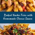 While the baked fries don’t freeze well since they tend to get soggy after thawing, the nacho cheese sauce freezes beautifully. Store the sauce in a freezer-safe container for up to two months. Defrost it slowly in the fridge before reheating gently on the stove while stirring.