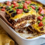 Taco Casserole is a hearty, family-friendly dish layered with seasoned ground beef, beans, salsa, cheese, and crunchy tortilla chips. It brings all the flavors of a taco night into one easy-to-make baked meal that’s perfect for busy weeknights, potlucks, or make-ahead dinners.