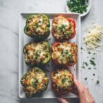 You can freeze these stuffed peppers for up to 2 months. Place the fully assembled and baked peppers in a freezer-safe dish or wrap them individually in foil and plastic wrap to prevent freezer burn. Thaw overnight in the fridge before reheating.