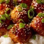 These Teriyaki Meatballs are a flavorful and easy-to-make dish featuring lean ground turkey combined with aromatic ginger, garlic, and green onions. Baked to perfection and coated in a homemade teriyaki sauce, they make a perfect appetizer or main course with a delicious Asian-inspired glaze.
