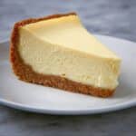 This classic homemade cheesecake features a graham cracker crust and a rich, creamy filling made with cream cheese, sugar, and eggs. Lightly flavored with lemon juice and vanilla, this cheesecake is baked to perfection and then chilled for several hours to develop a smooth, indulgent texture that’s perfect for any occasion.