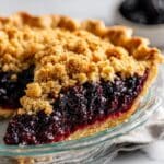 Set your pie on a foil-lined baking sheet to catch any drips and bake for 70 to 75 minutes. You’re looking for a golden-brown streusel topping and bubbling, thickened filling. If the crust edges brown too quickly, cover them with foil or a pie crust shield halfway through baking to avoid burning.