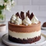 Indulge in this luscious Triple Chocolate Mousse Cake featuring layers of rich dark, milk, and white chocolate mousses atop a tender chocolate cake base. This elegant dessert is perfect for special occasions, combining three distinct chocolate flavors in a creamy, airy mousse texture that melts in your mouth.