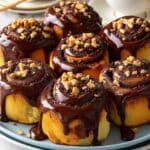 These Twist & Shout Chocolate Hazelnut Rolls are soft, fluffy sweet rolls filled with a rich Nutella and cocoa powder mixture, baked to golden perfection, and topped with a creamy chocolate hazelnut frosting. Perfect for breakfast, brunch, or a decadent dessert, these rolls combine a tender yeast dough with a luscious chocolate hazelnut filling and a smooth glaze that brings indulgence in every bite.