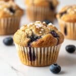 Store any leftover Vegan Blueberry Muffins Recipe in an airtight container at room temperature for up to 2 days to keep them soft and fresh. For longer storage, keep them in the fridge but allow to warm a little before serving for best texture.