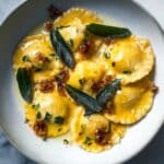 This Vegan Lemon Ricotta Ravioli Recipe is freezer friendly! Arrange uncooked ravioli on a lined baking sheet and freeze until solid, then transfer to a freezer bag or container. When you’re ready to eat, boil from frozen and add 1 to 2 minutes to the cooking time. This way you can have fresh homemade ravioli whenever the craving hits.