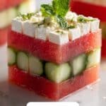 • Feta cheese: Offers a salty, creamy contrast to the sweet watermelon cubes.