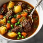 Reheat leftovers gently in a saucepan over low to medium heat, stirring occasionally until warmed through. If the stew has thickened too much, add a splash of beef broth or water to loosen it up and restore that perfect stew consistency.